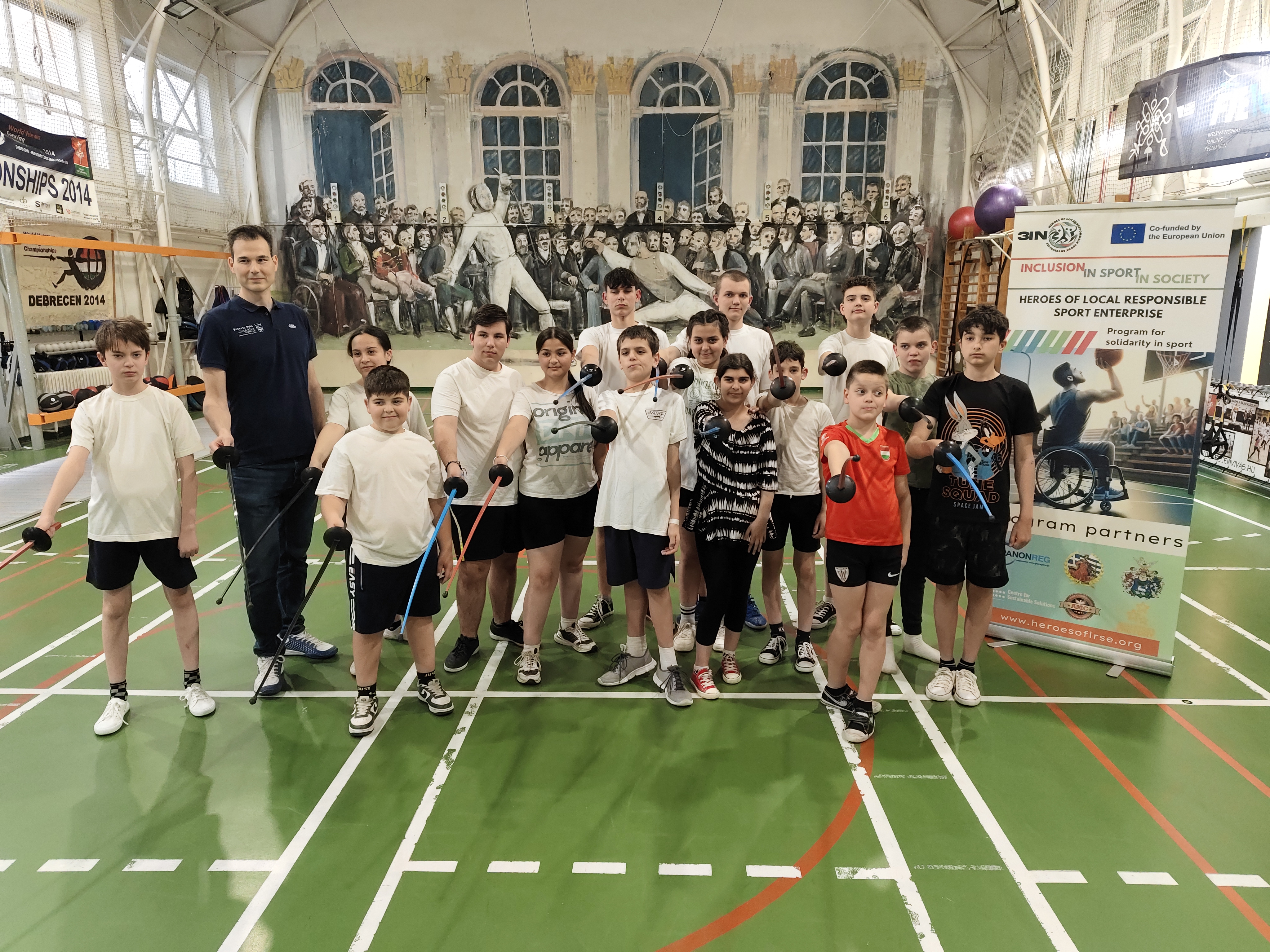 15 fő, hallássérült és beszédfogyatékos tanuló a vívás alapvető mozgáselemeivel ismerkedett meg Serra György, Debrecen Város Hajós Alfréd-díjas vívóedző, a Magyar Vívó Szövetség elnökségi tagjának irányítása alatt. A fiatalok nagy figyelemmel hallgatták iránymutatásait, és örömmel próbálkoztak a szabályok betartása mellett társuk legyőzésével.